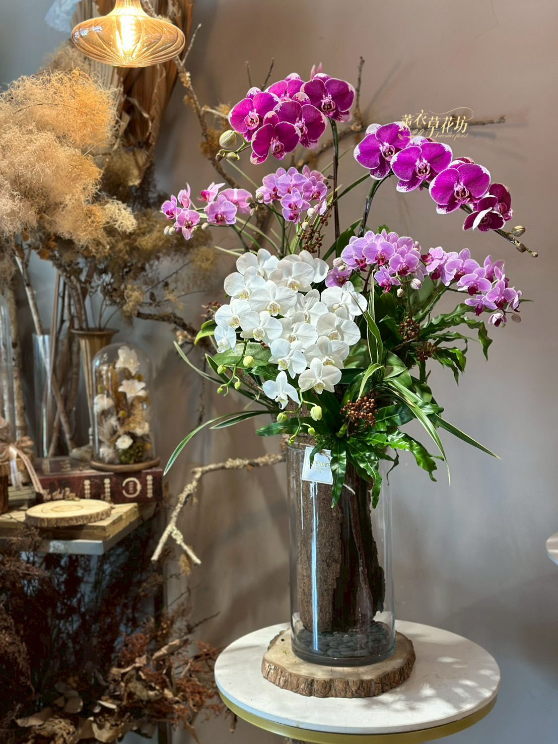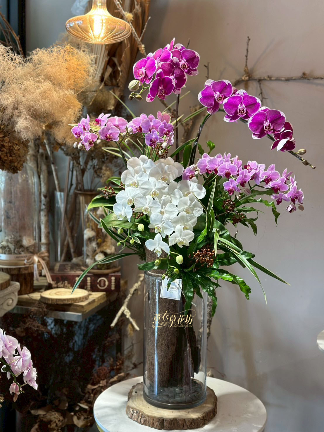 【品名】蝴蝶蘭&玻璃最新設計/當季同等級玻璃花器
