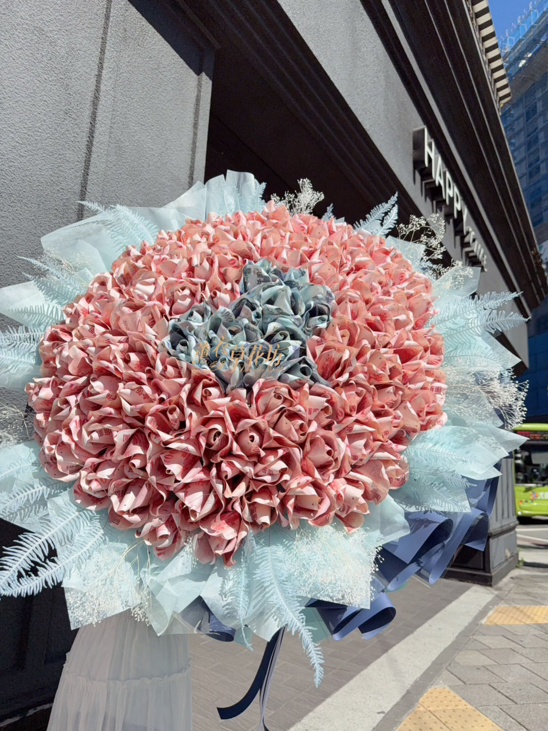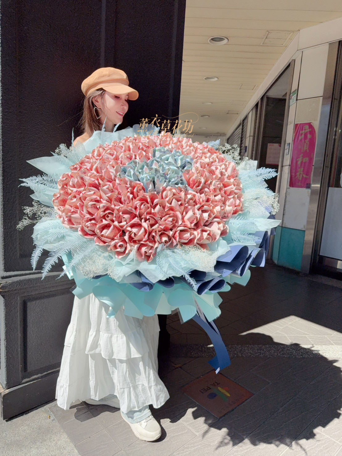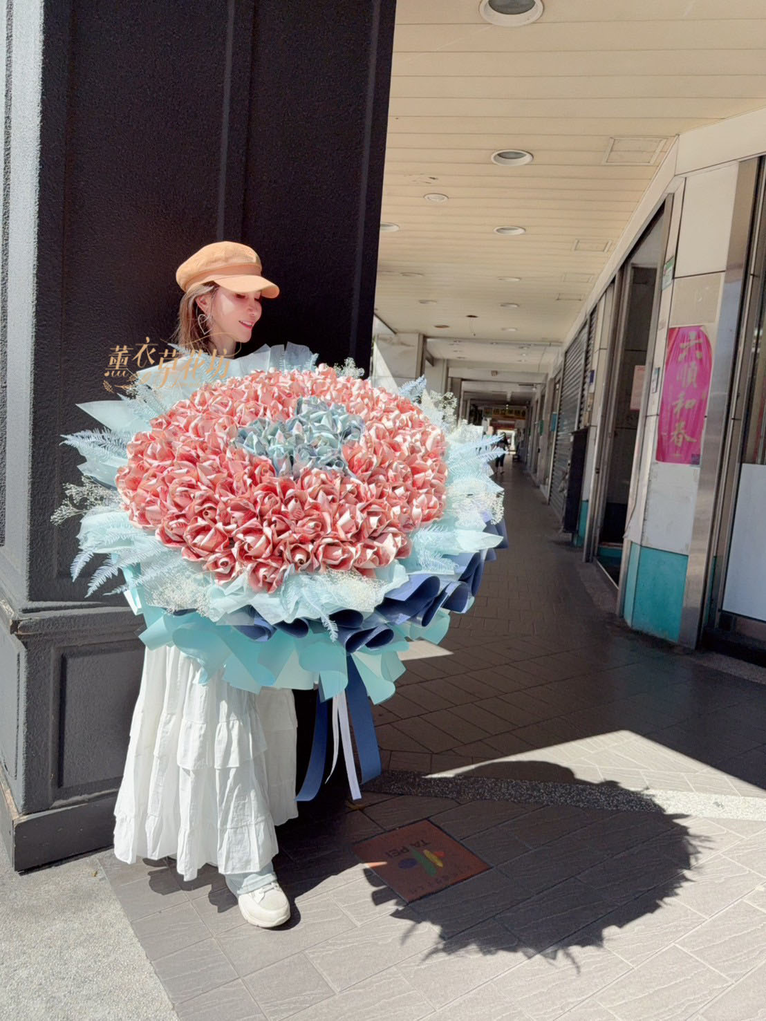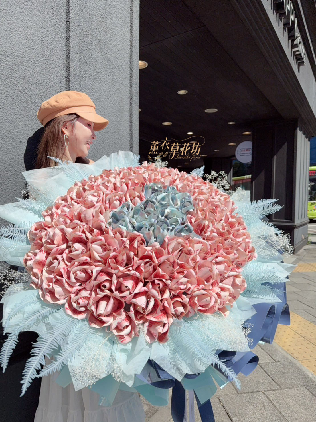 (此圖片是鈔票折法為玫瑰方式.共100朵鈔票玫瑰)此做工繁複.請10天前預訂.