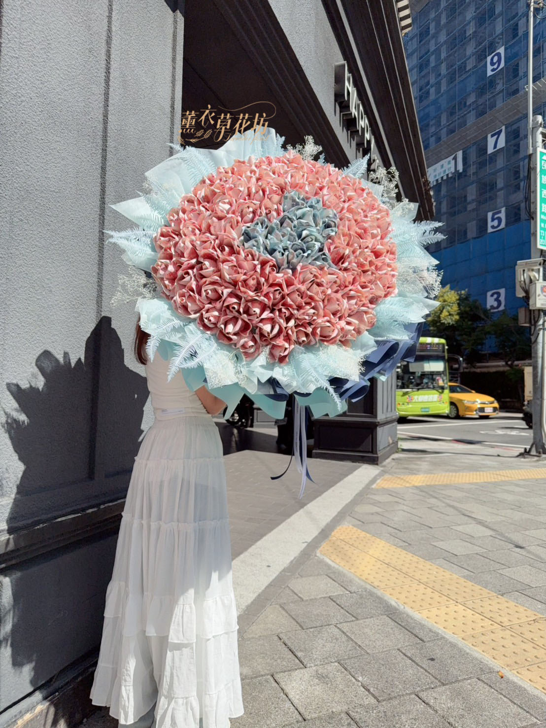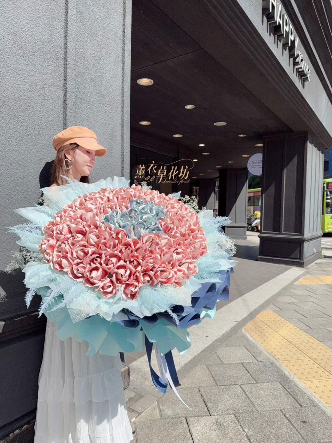 3.大型花束(沒有提袋).例如99朵以上.鈔票花束50朵以上不會有提袋唷(因太大了袋子裝不下)