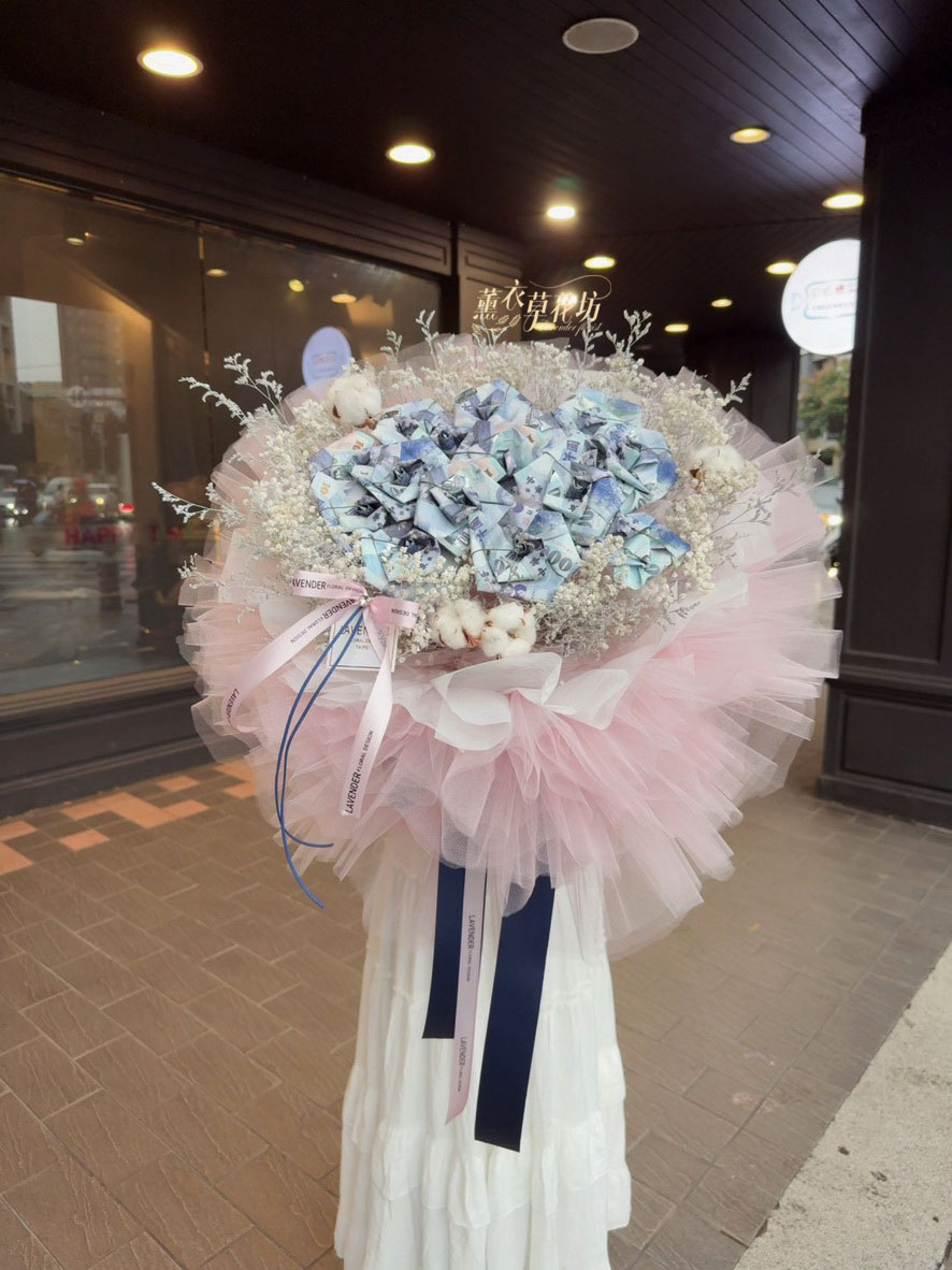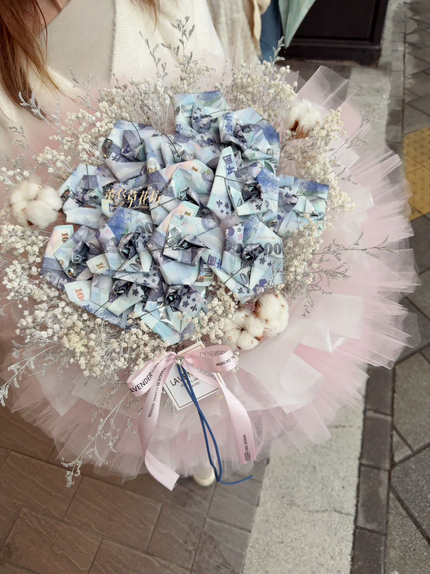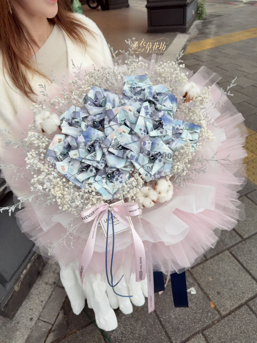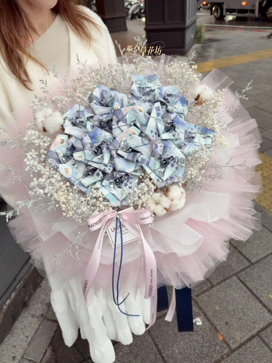 【品名】鈔票&乾燥花花材花束設計~
