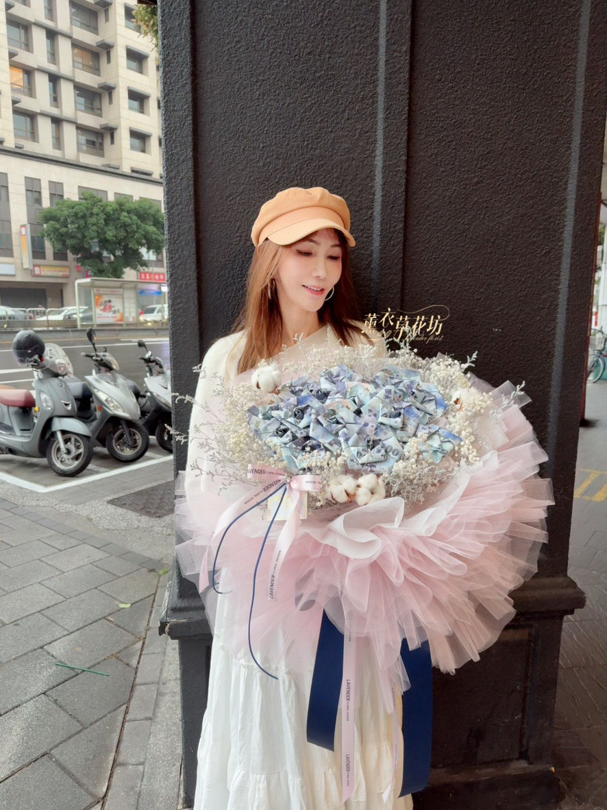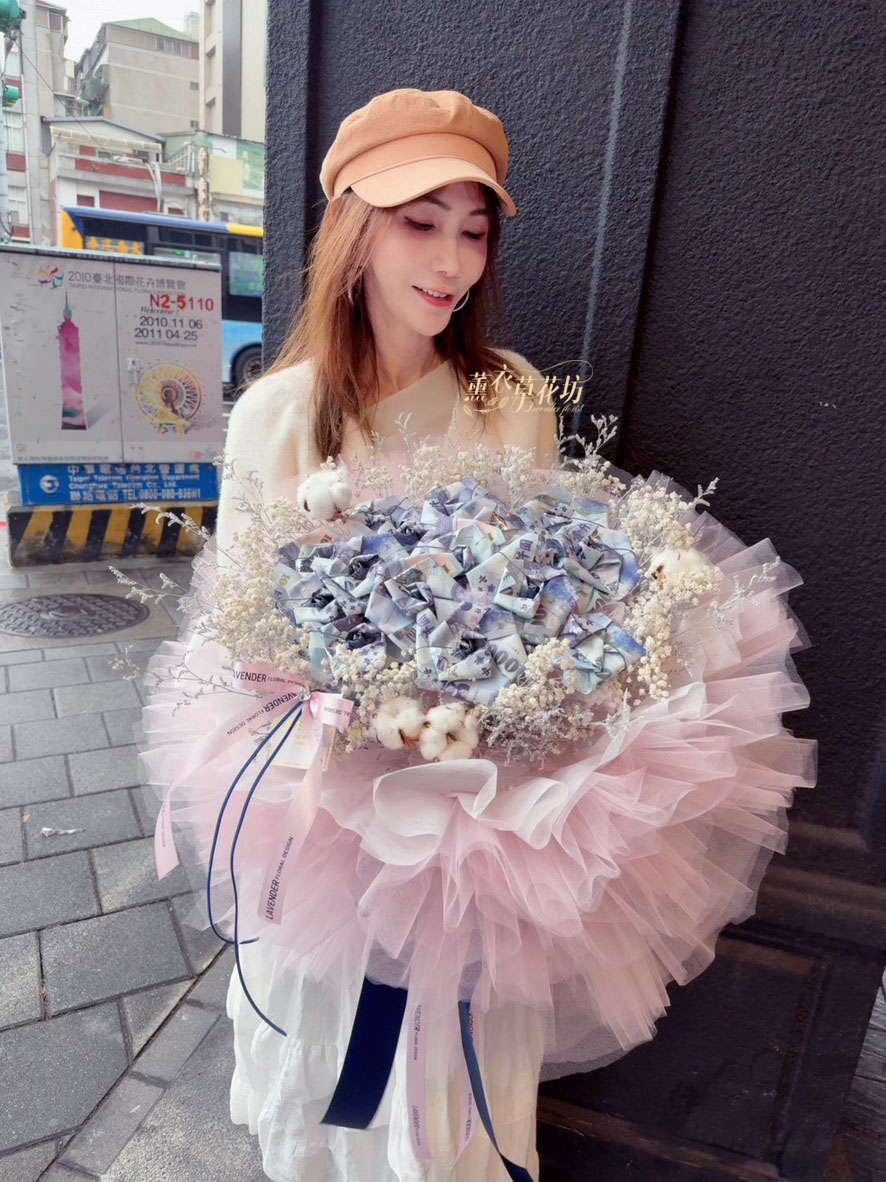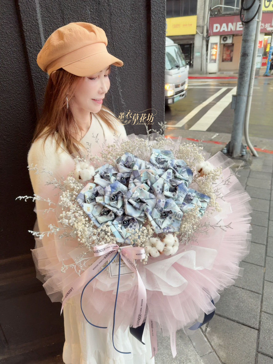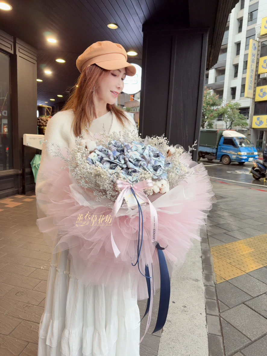 【品名】鈔票&乾燥花花材花束設計~