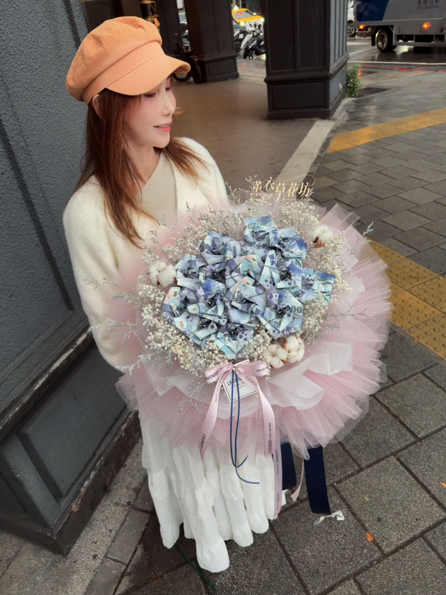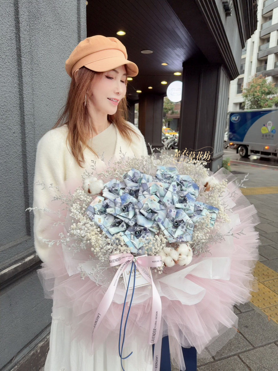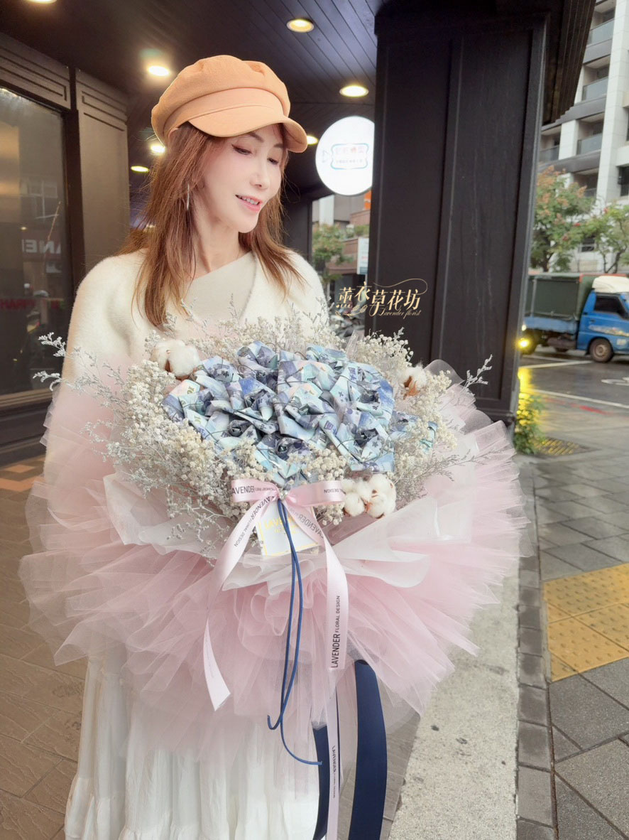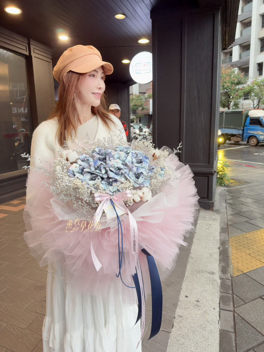 【品名】鈔票&乾燥花花材花束設計~