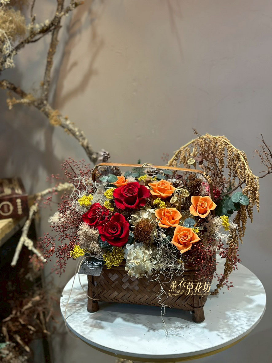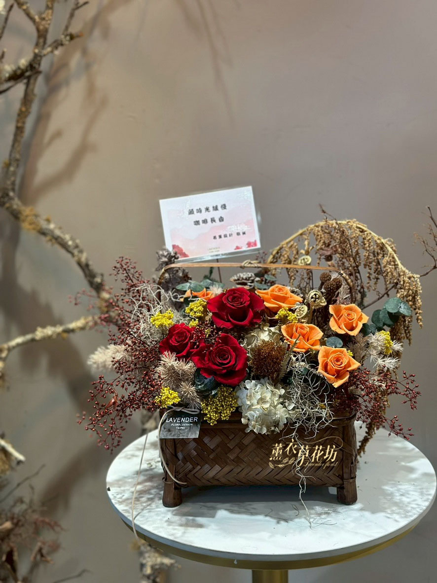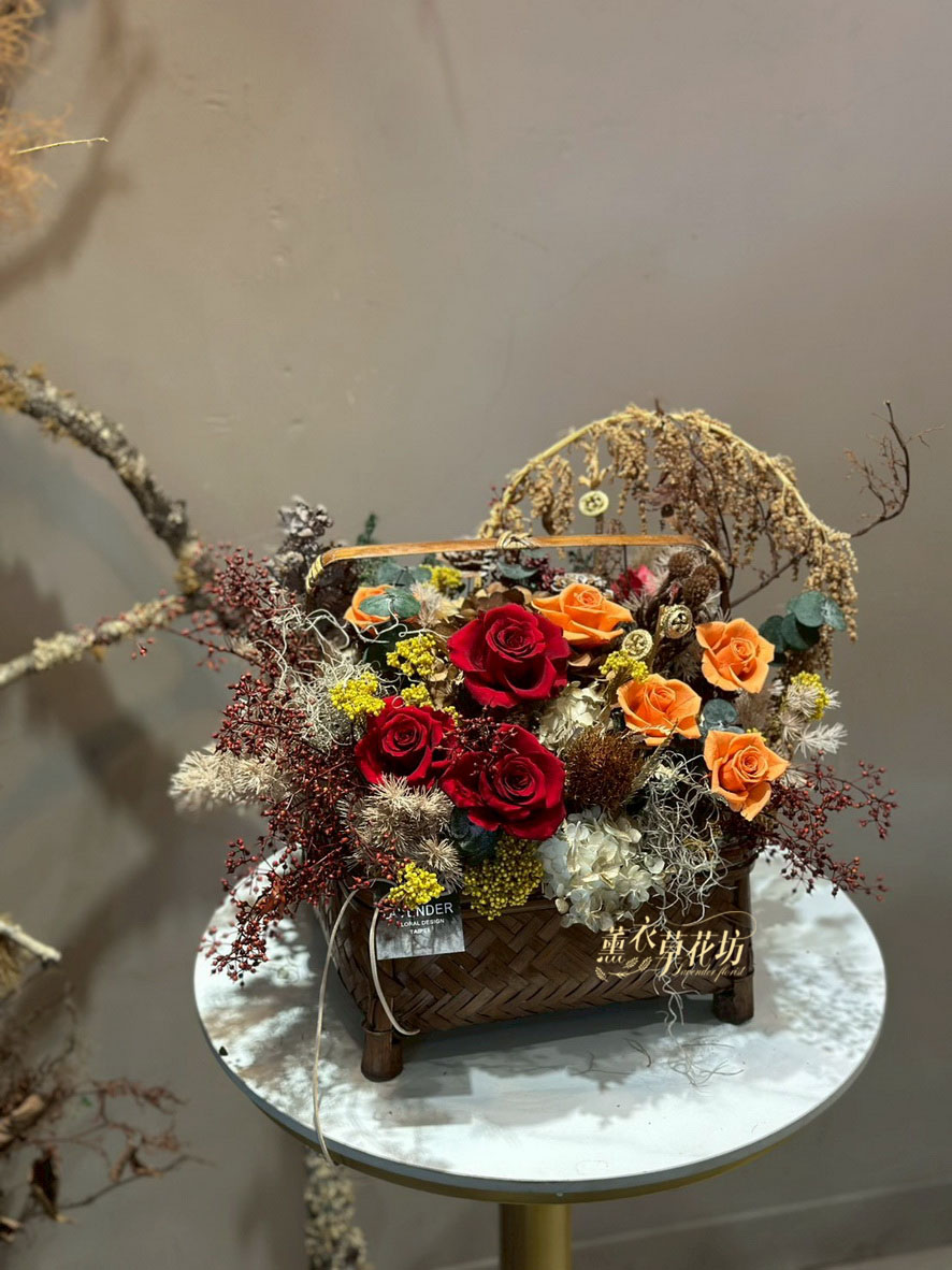 1.因花卉常有季節性暫時短缺的問題,因此圖片中花卉會因貨源消長而稍加更動,若該花材短缺將以同等花材代替。