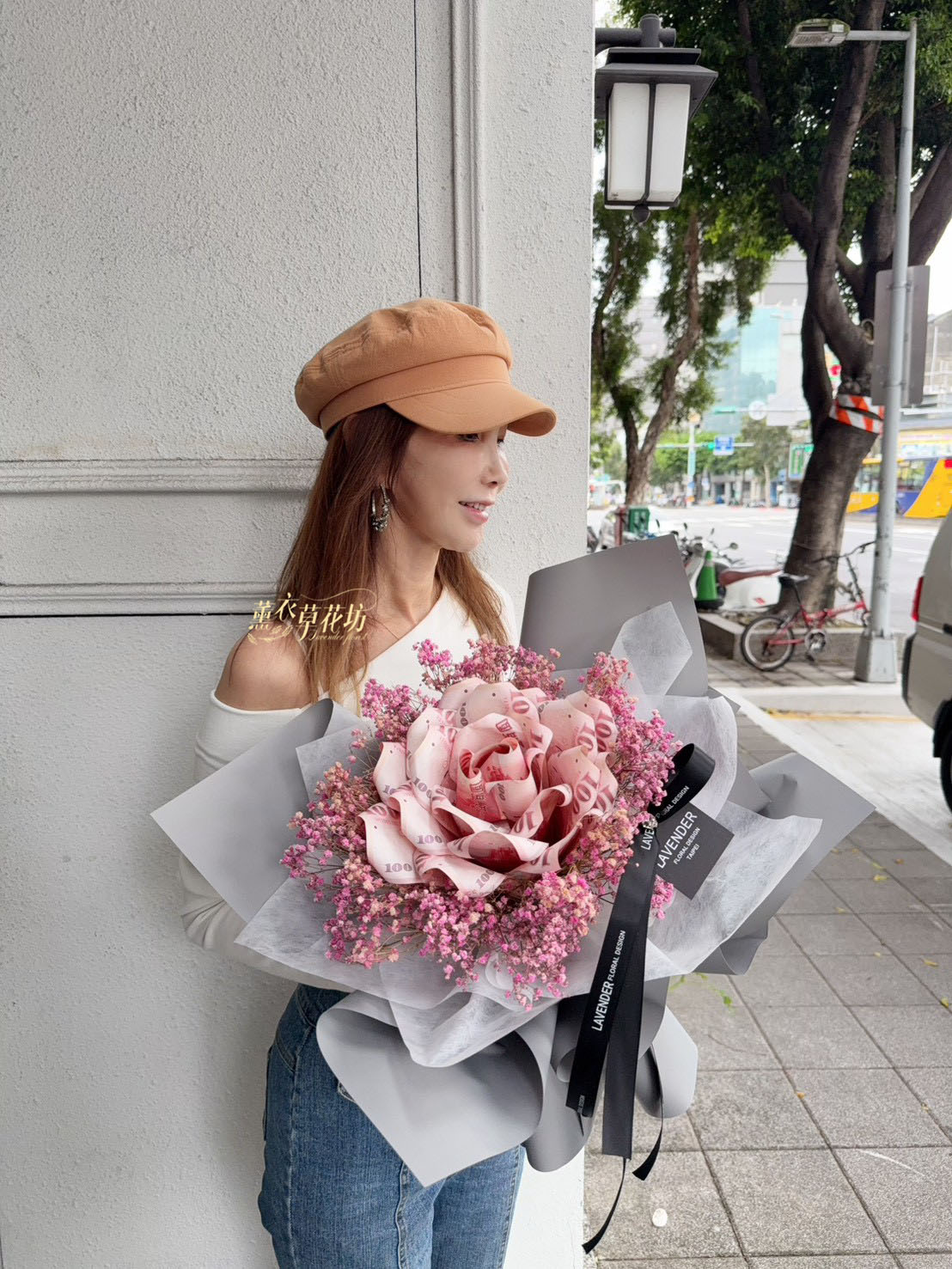 【品名】巨大玫瑰鈔票&滿天星花材(可以乾燥)花束設計~