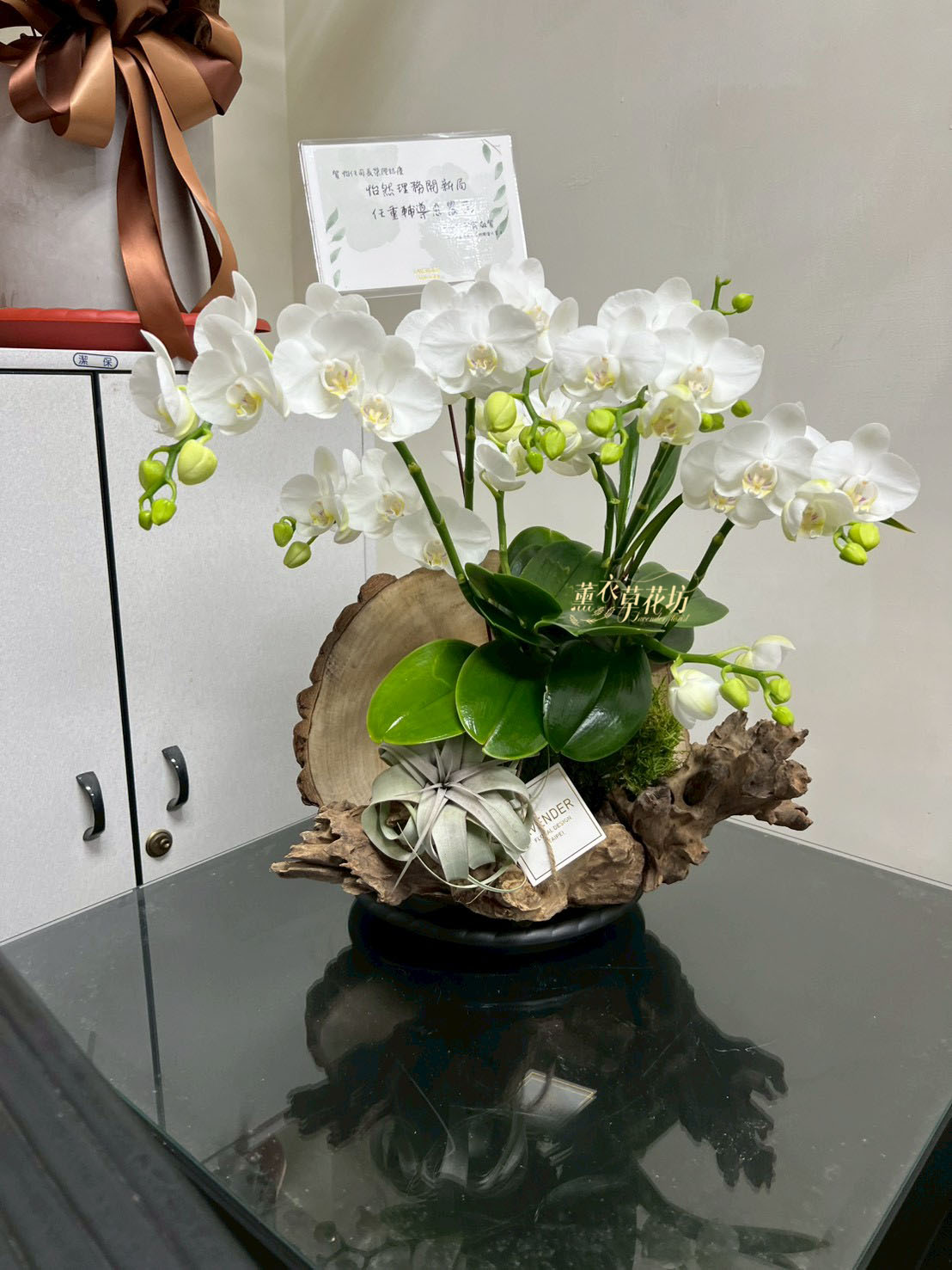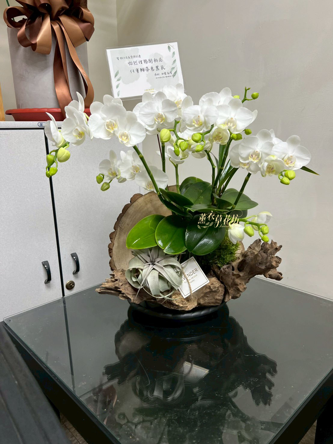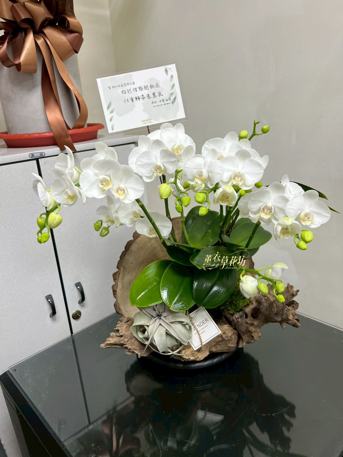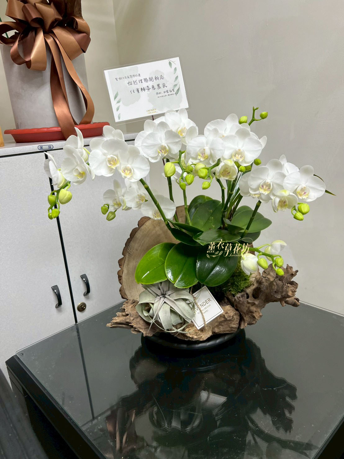 【品名】迷你蝴蝶蘭&天然木片設計~優雅風格-更換蘭花顏色請註記