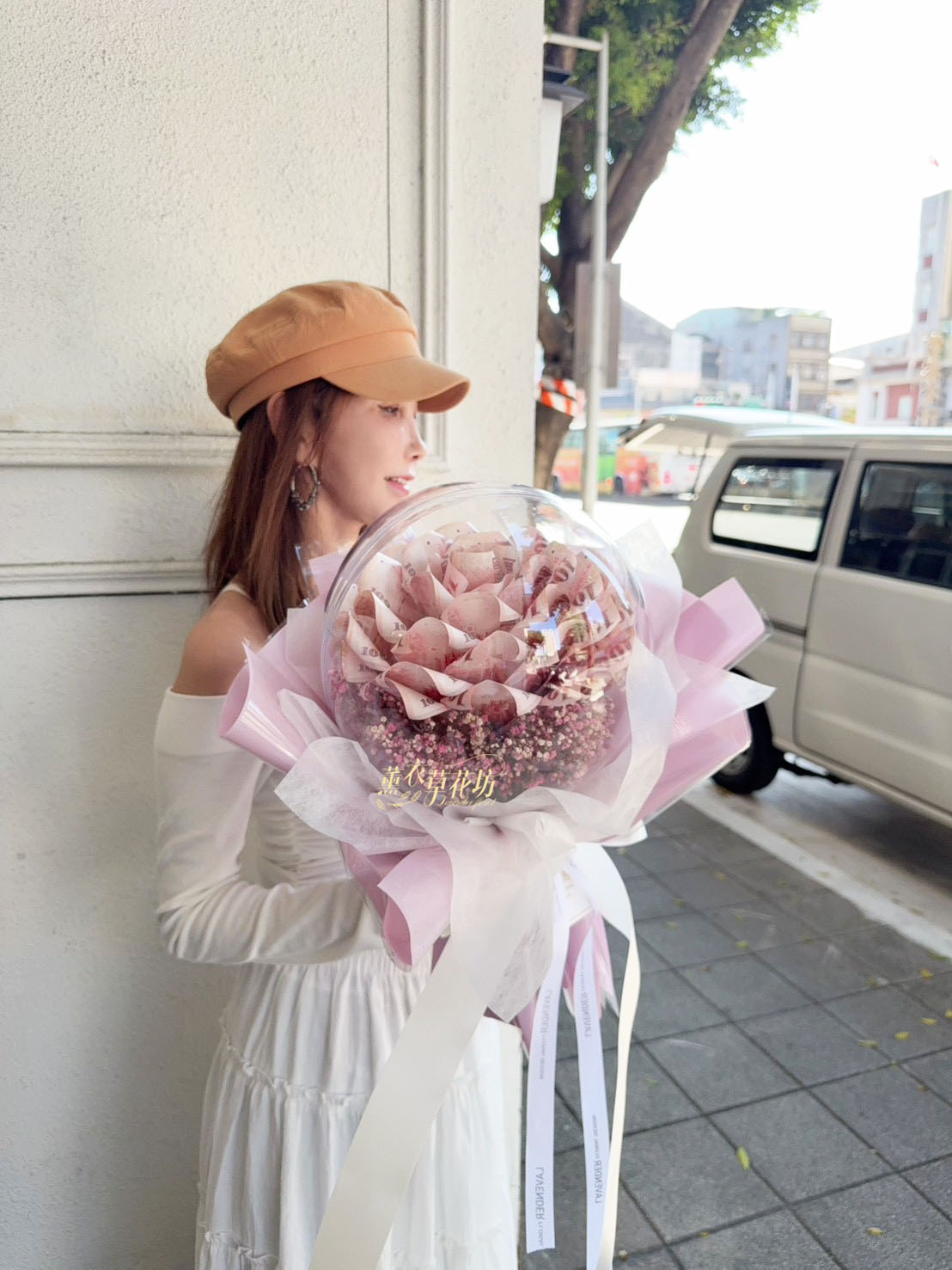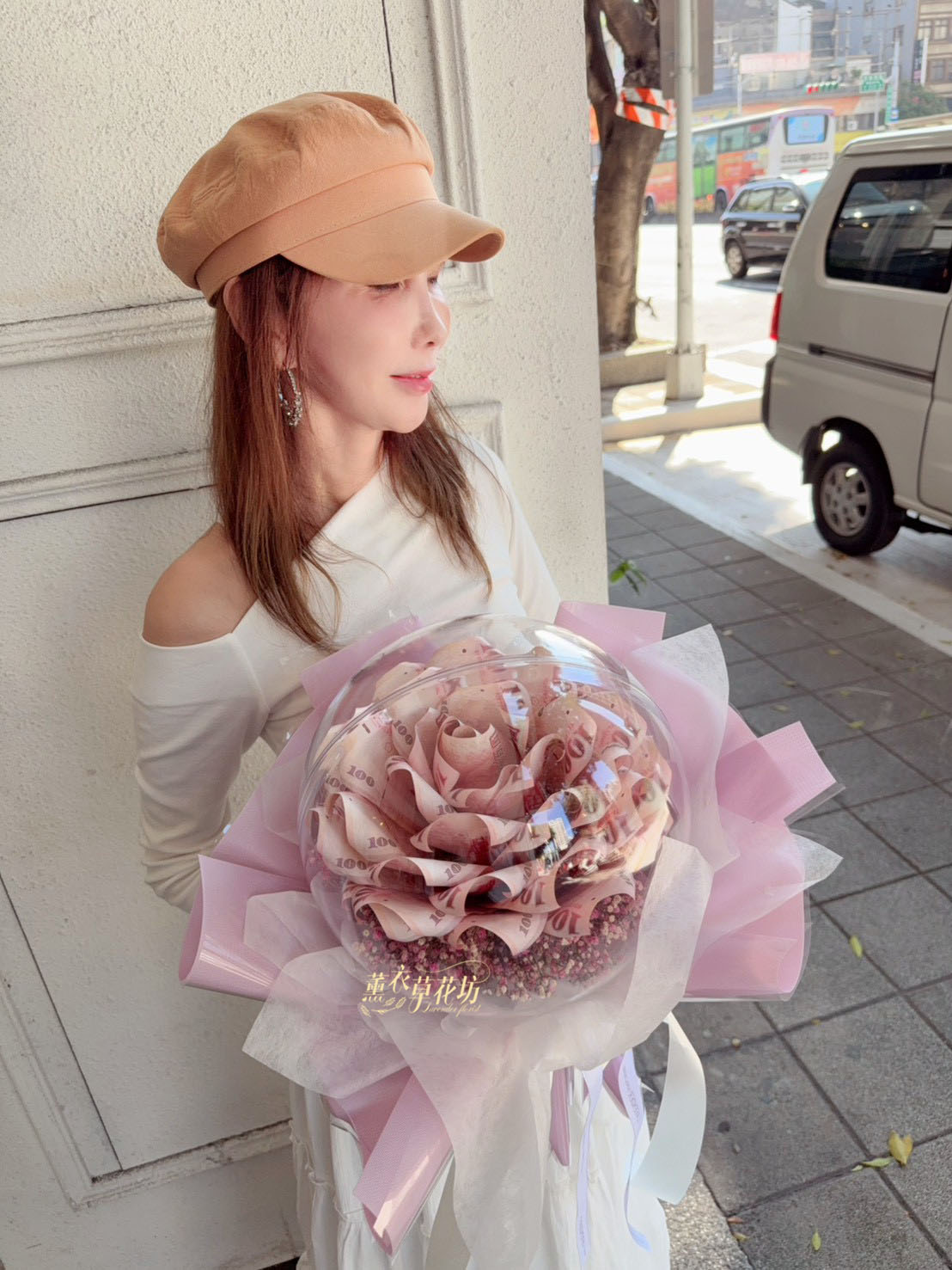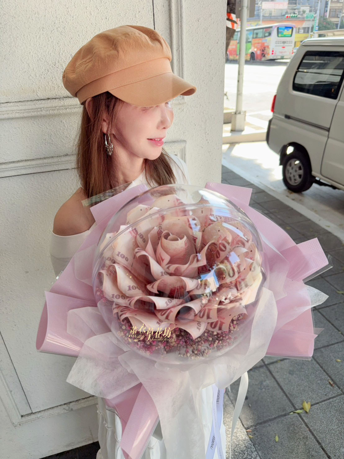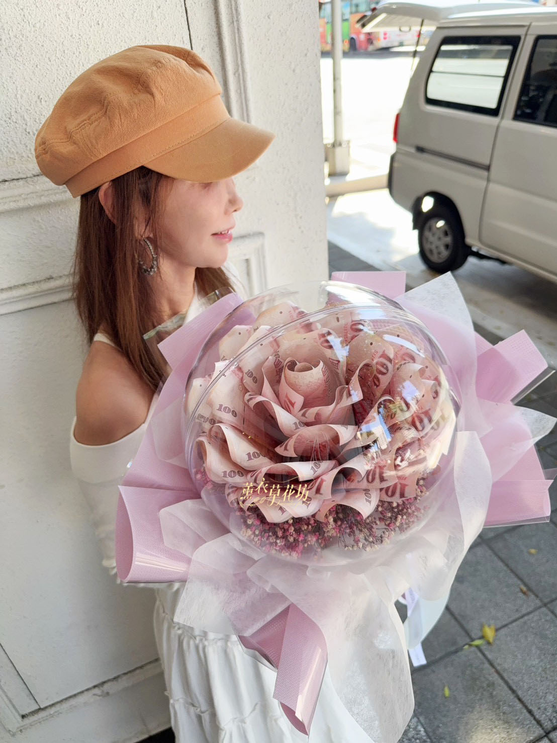 3.大型花束(沒有提袋).例如99朵以上.鈔票花束50朵以上不會有提袋唷(因太大了袋子裝不下)