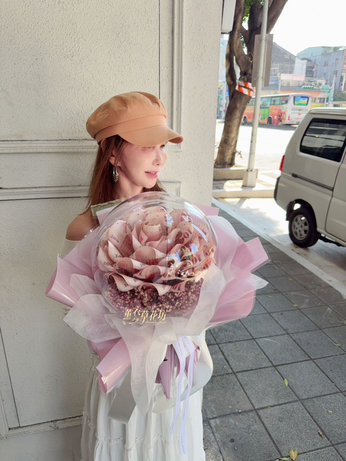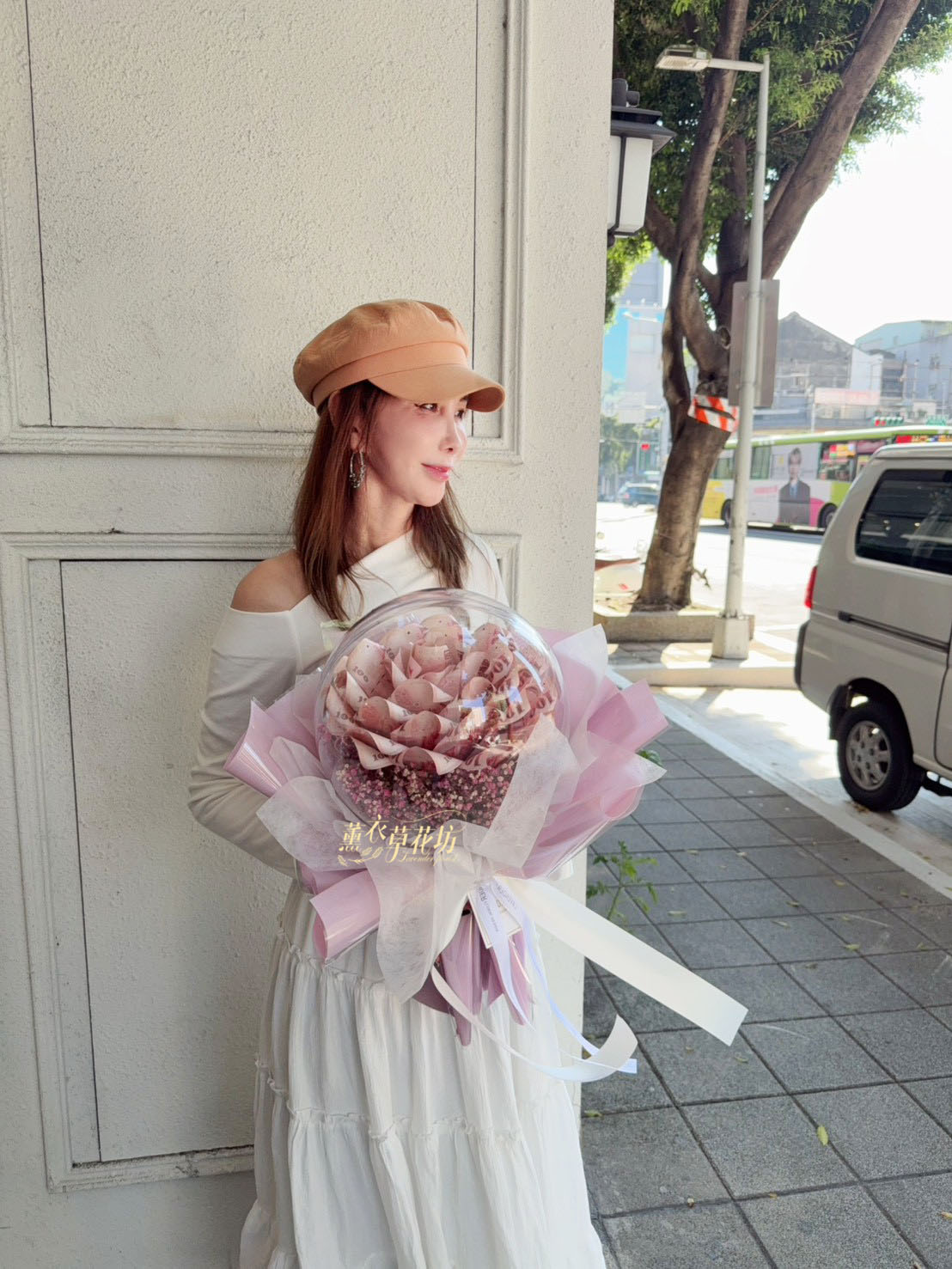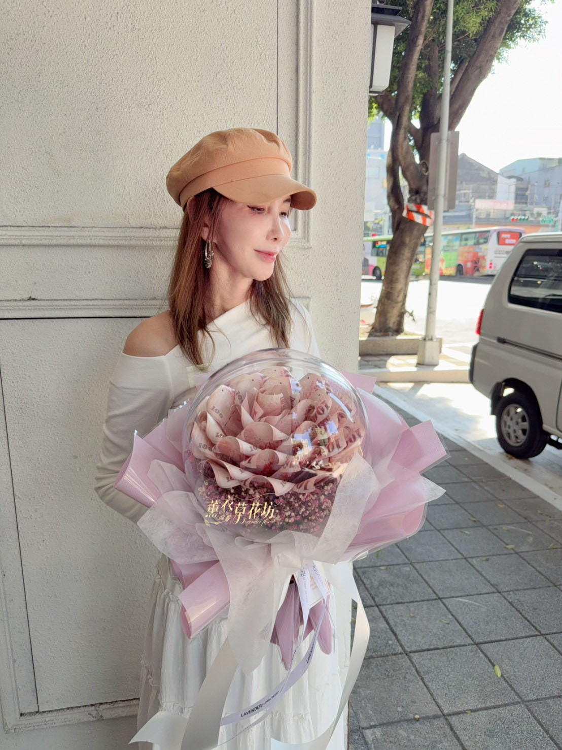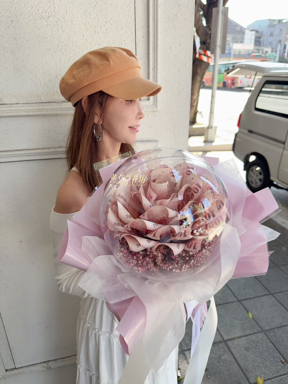 3.大型花束(沒有提袋).例如99朵以上.鈔票花束50朵以上不會有提袋唷(因太大了袋子裝不下)