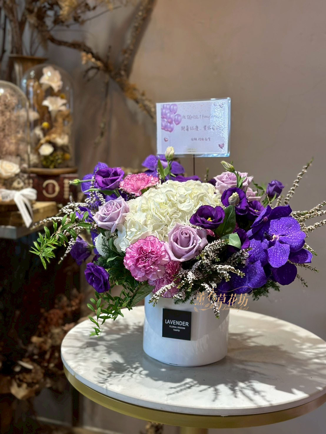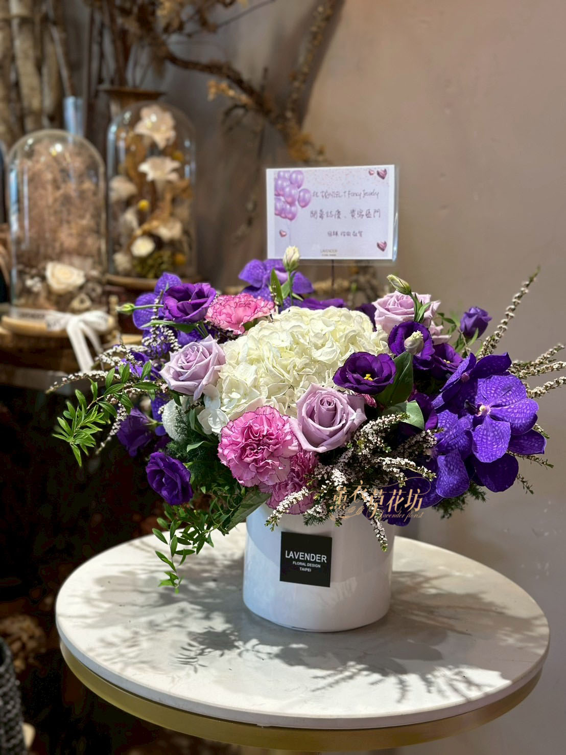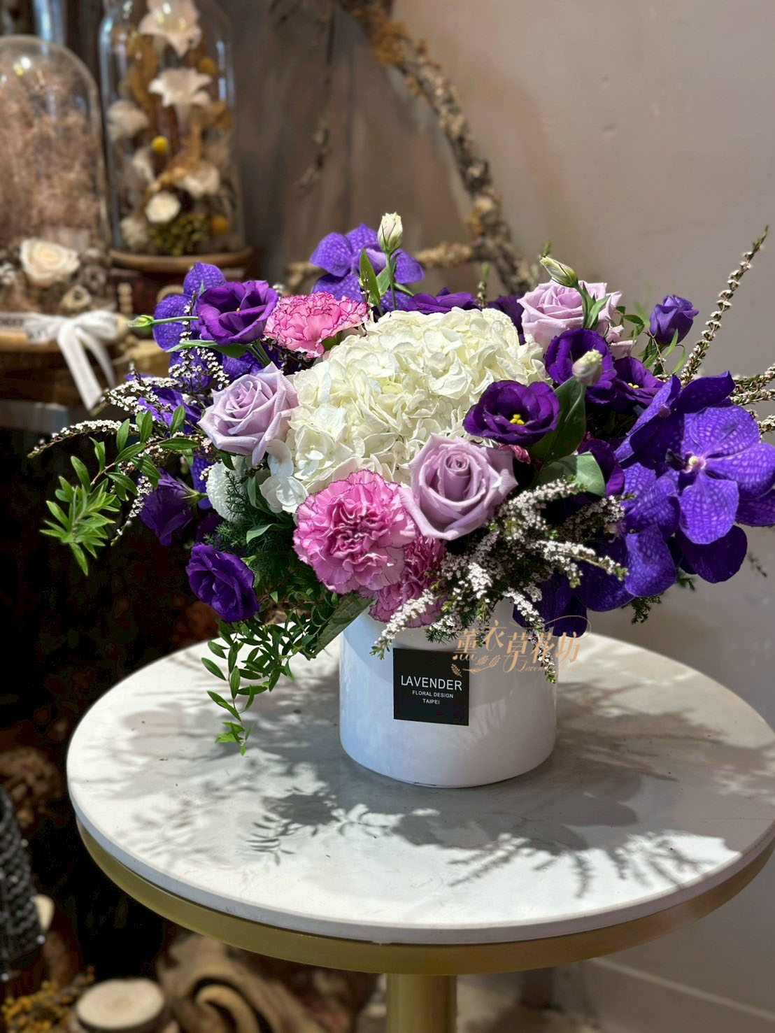 【規格】進口紫玫瑰/進口繡球/進口康乃馨/紫色芊黛蘭/當季配花