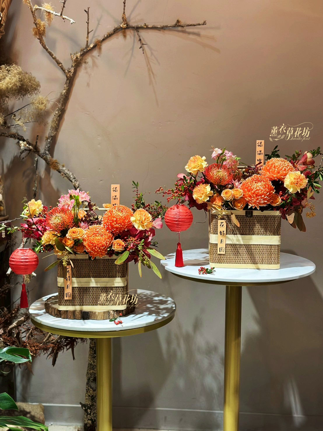 1.因花卉常有季節性暫時短缺的問題,因此圖片中花卉會因貨源消長而稍加更動,若該花材短缺將以同等花材代替。