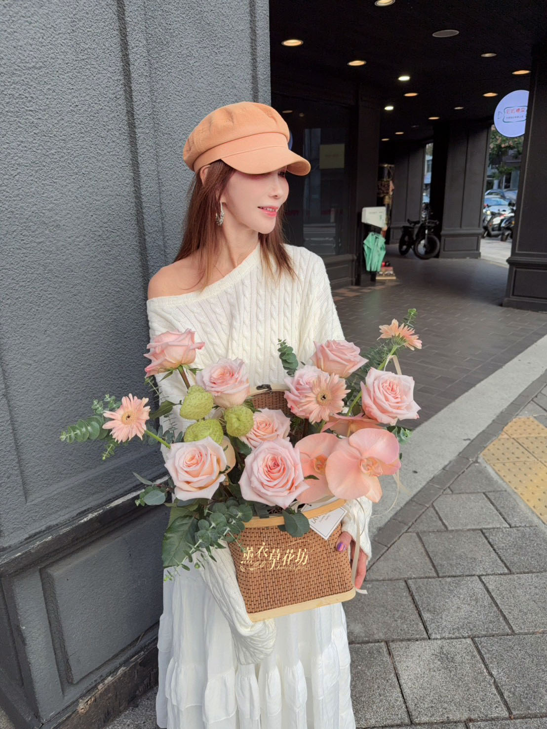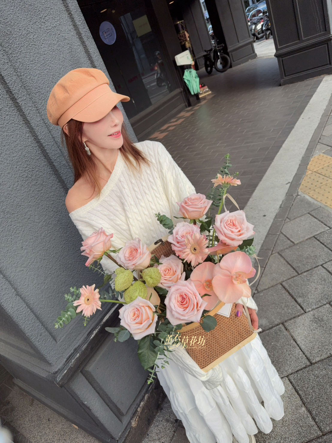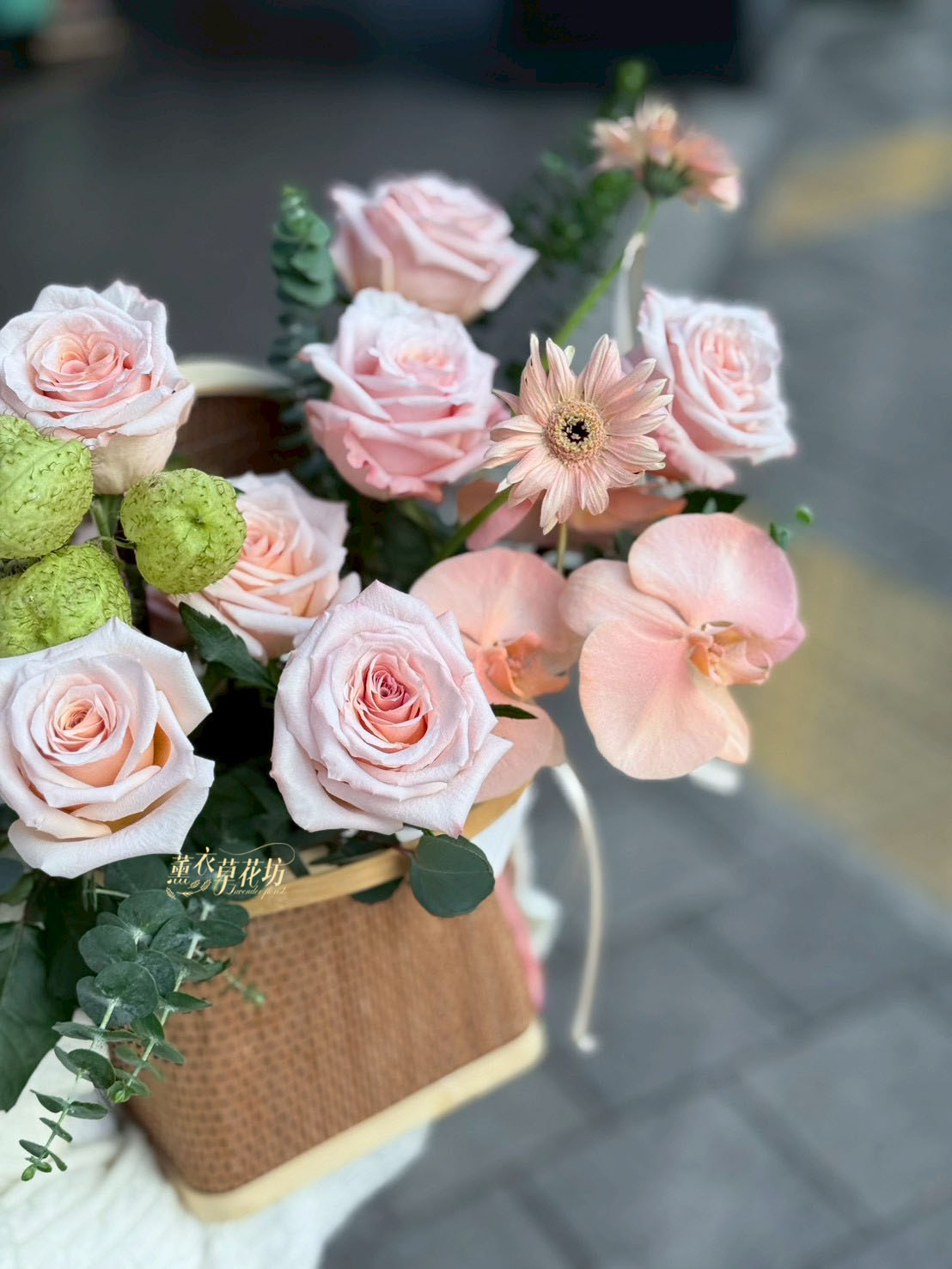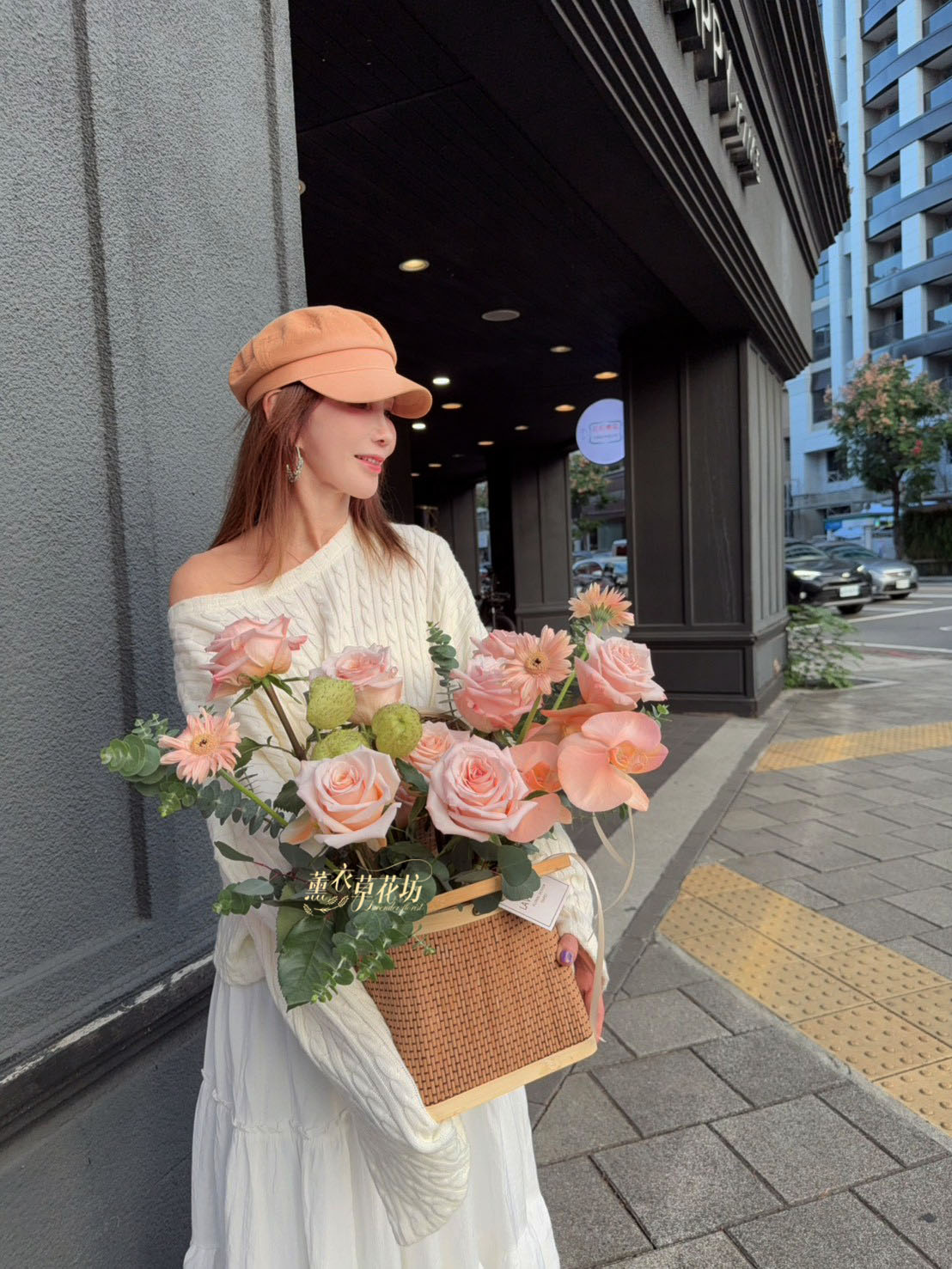【品名】進口微光粉玫瑰&提籃設計(類似款)