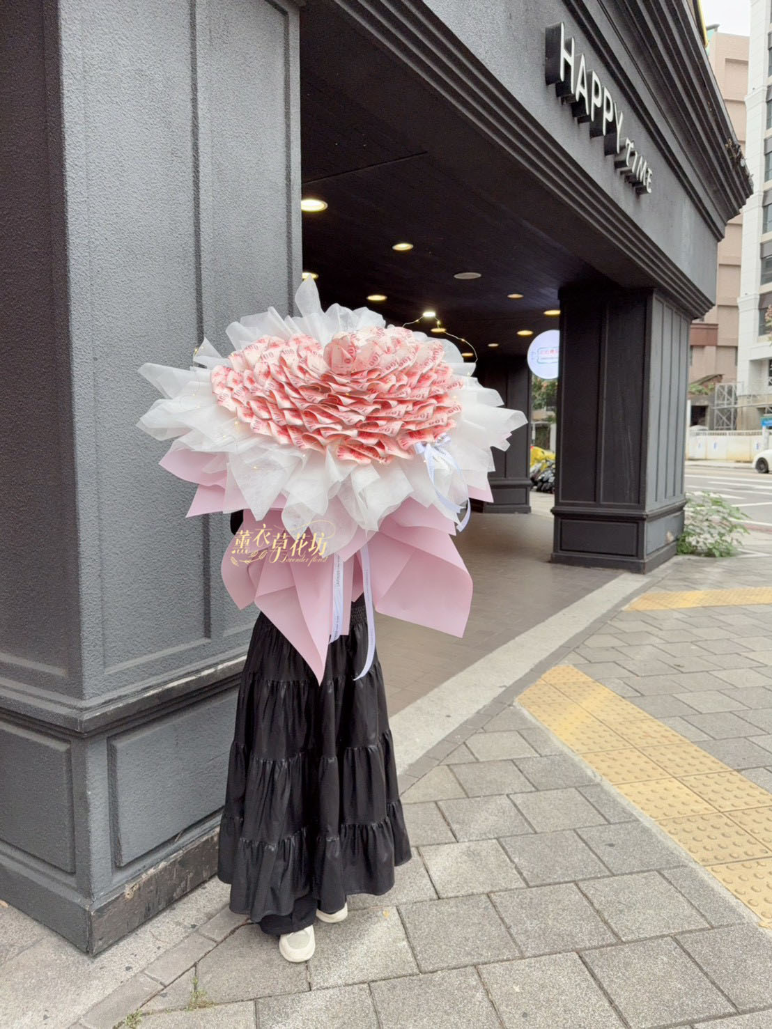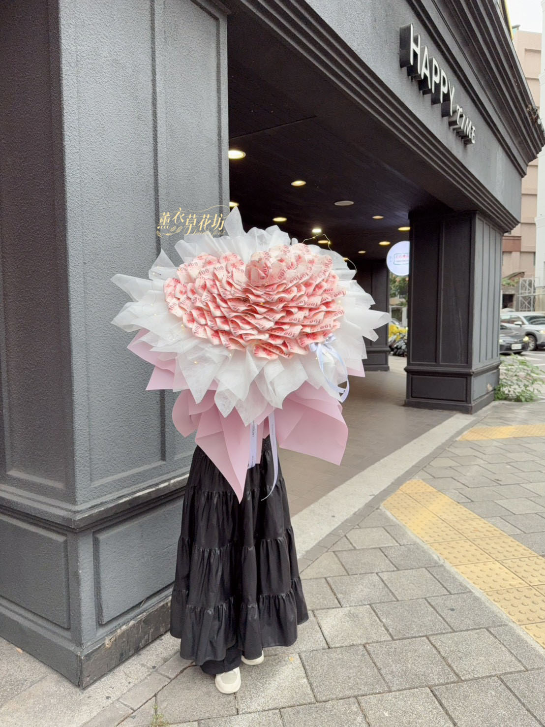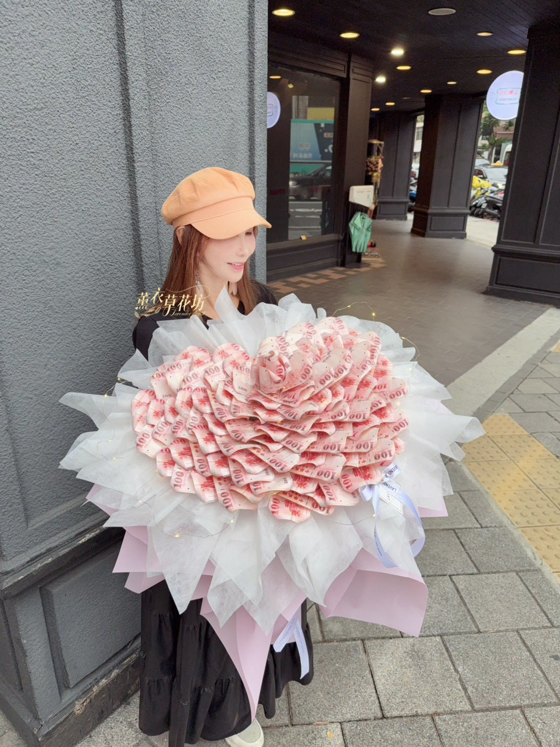 3.大型花束(沒有提袋).例如99朵以上.鈔票花束50朵以上不會有提袋唷(因太大了袋子裝不下)