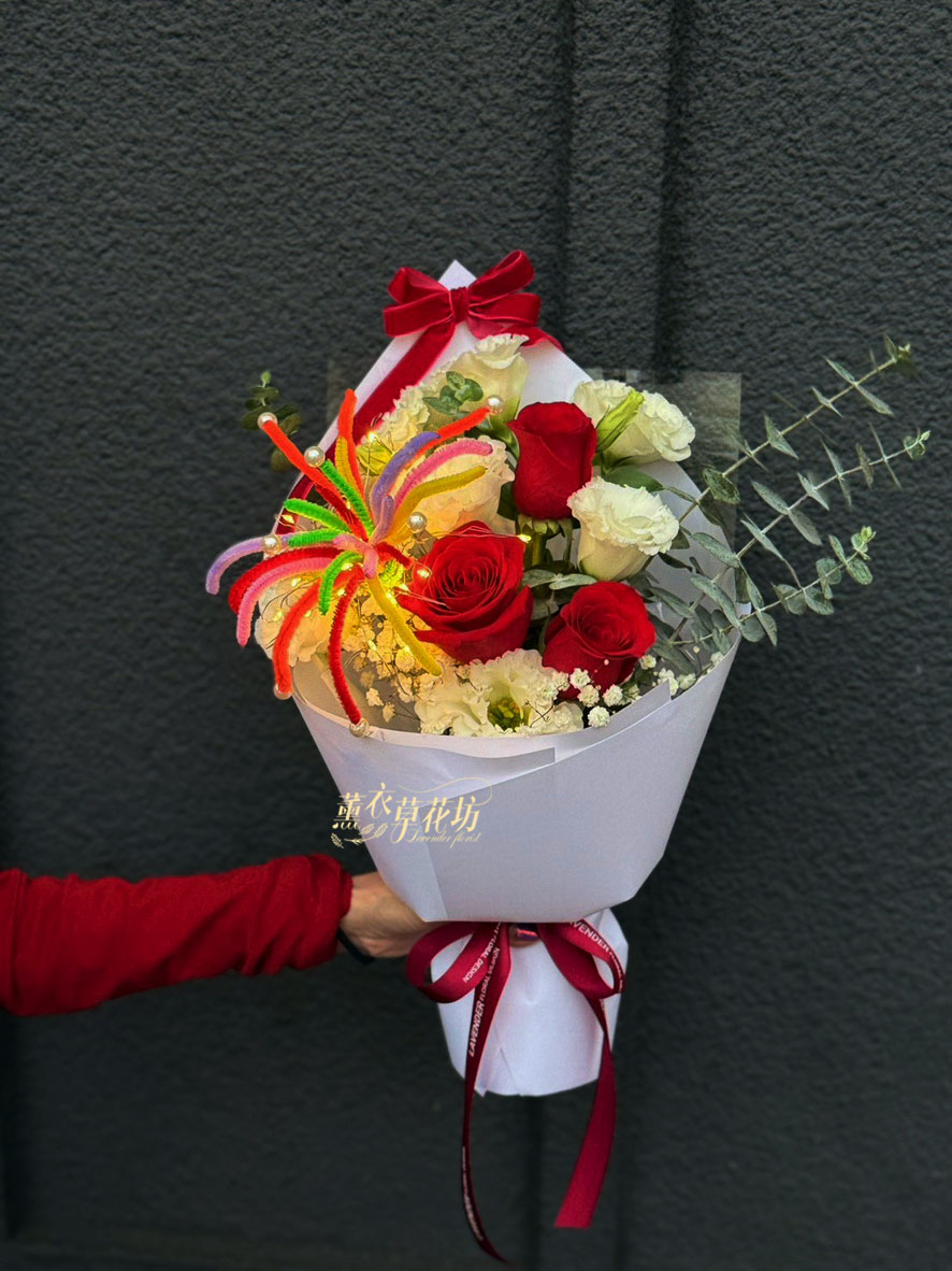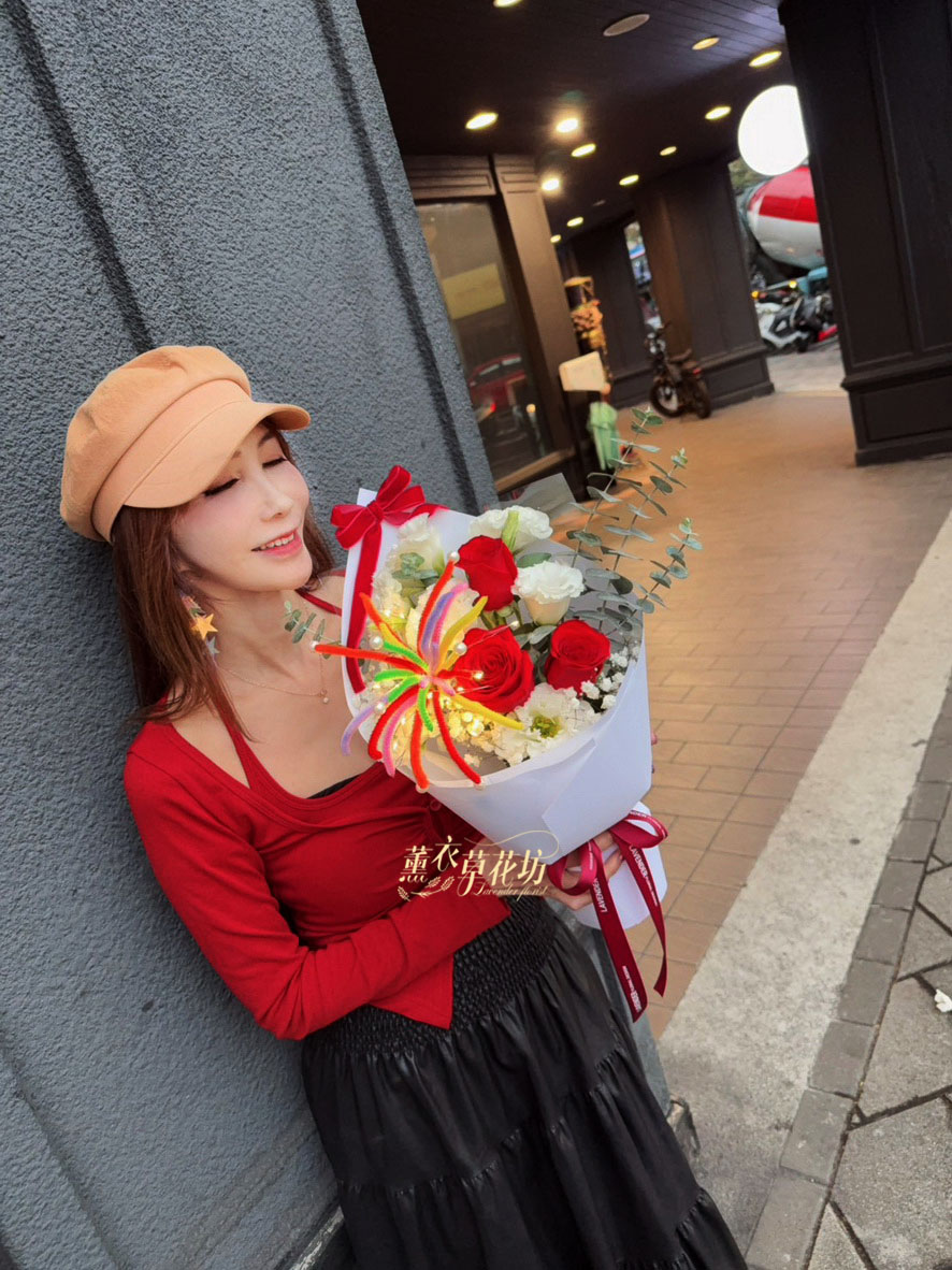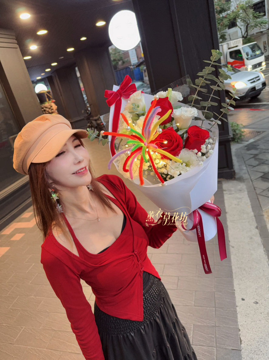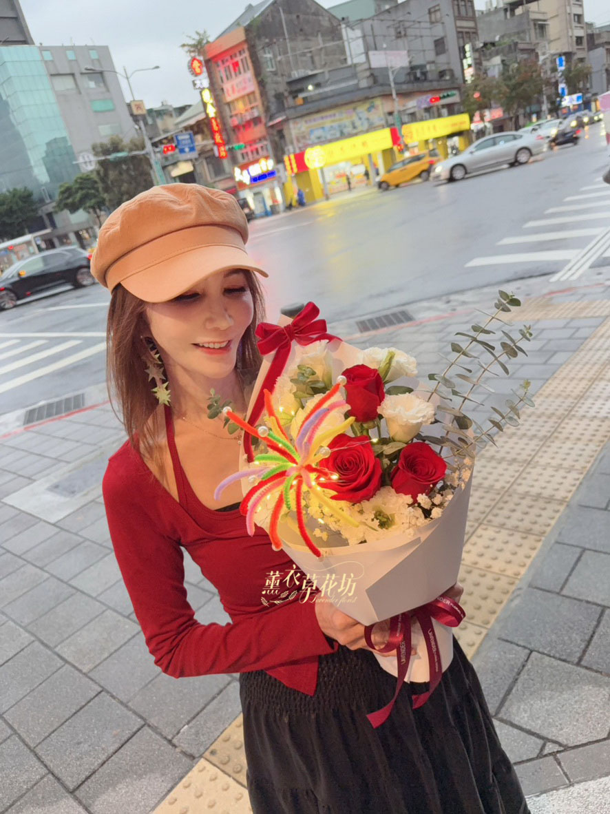 【規格】進口玫瑰/桔梗/煙火花/led燈/精緻包裝