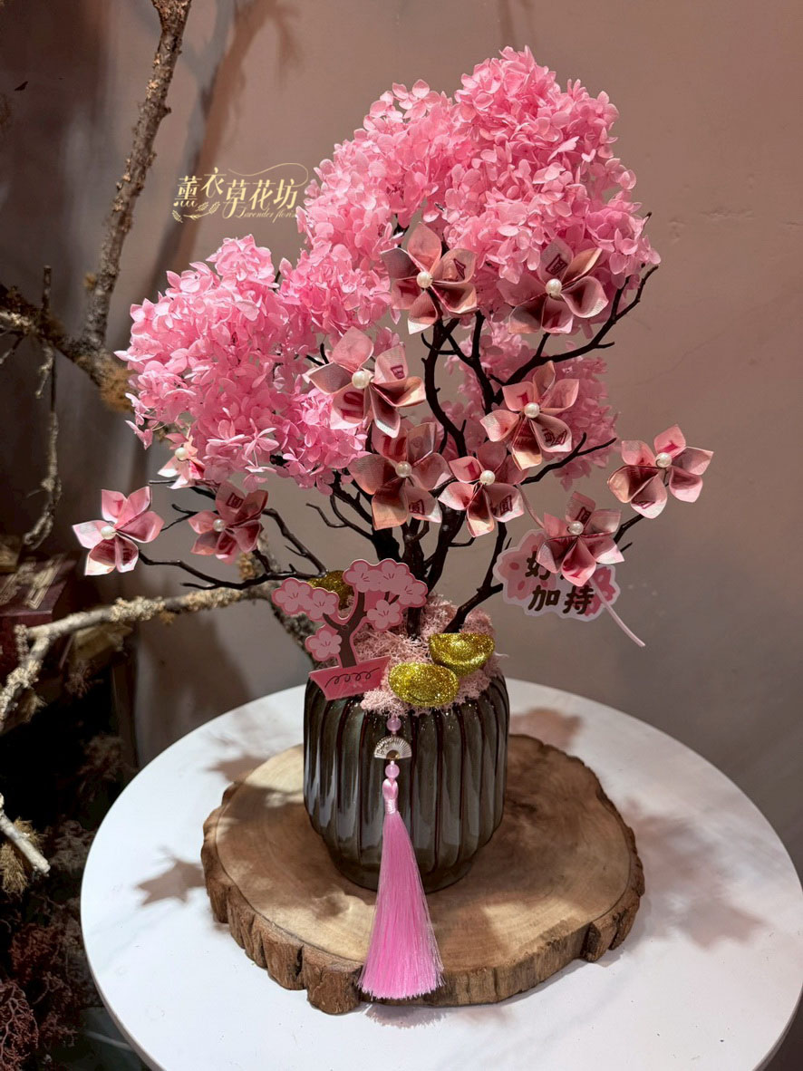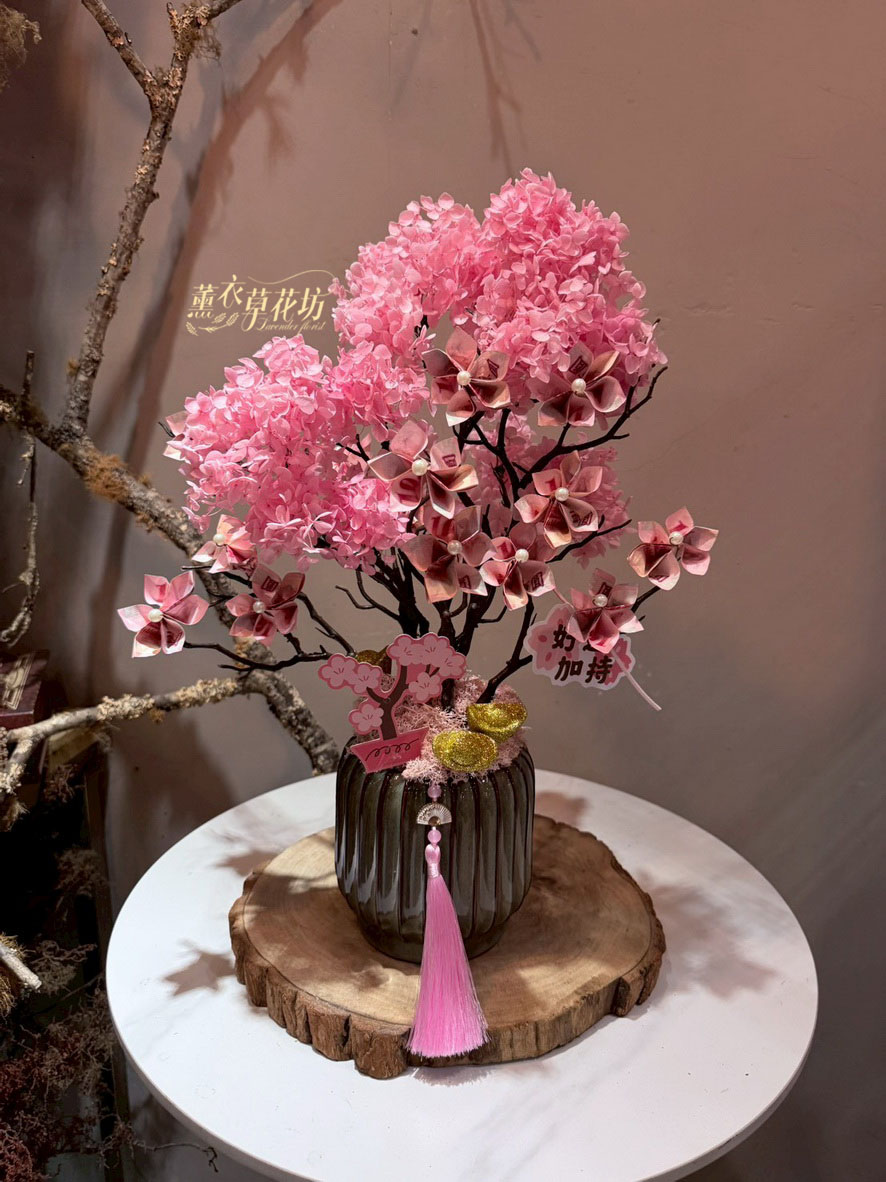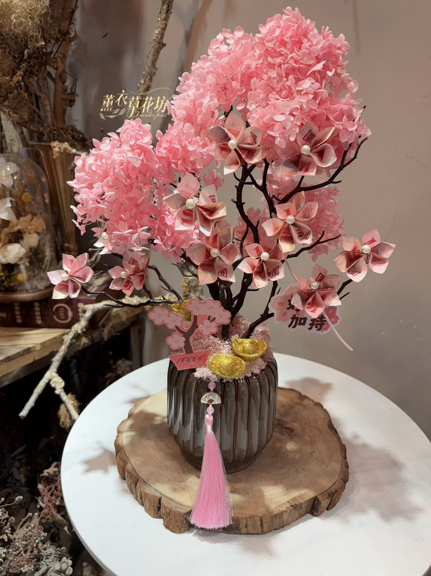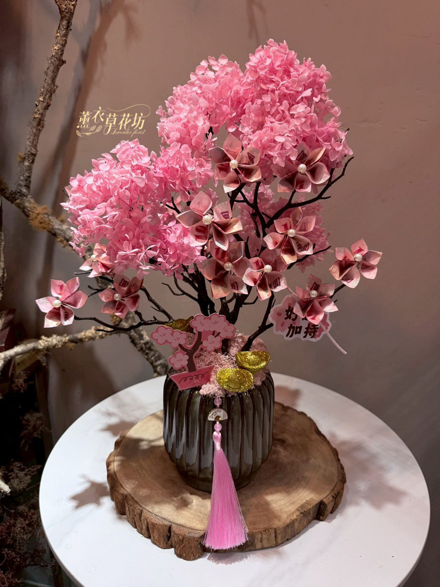 【品名】櫻花(永生花)搖錢樹(鈔票)設計
