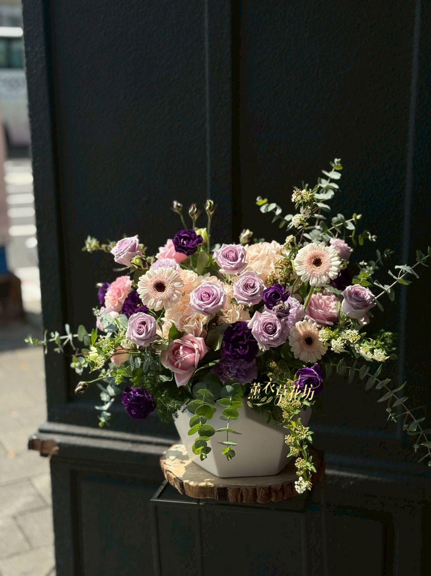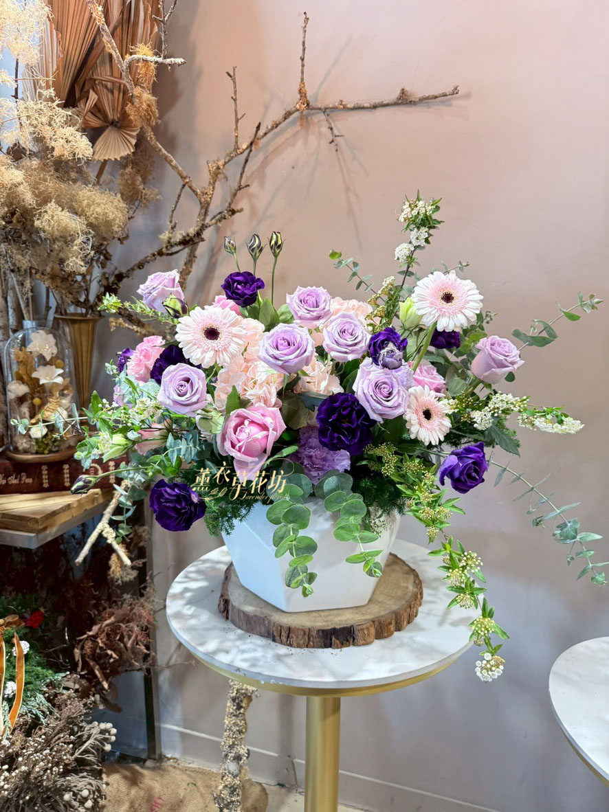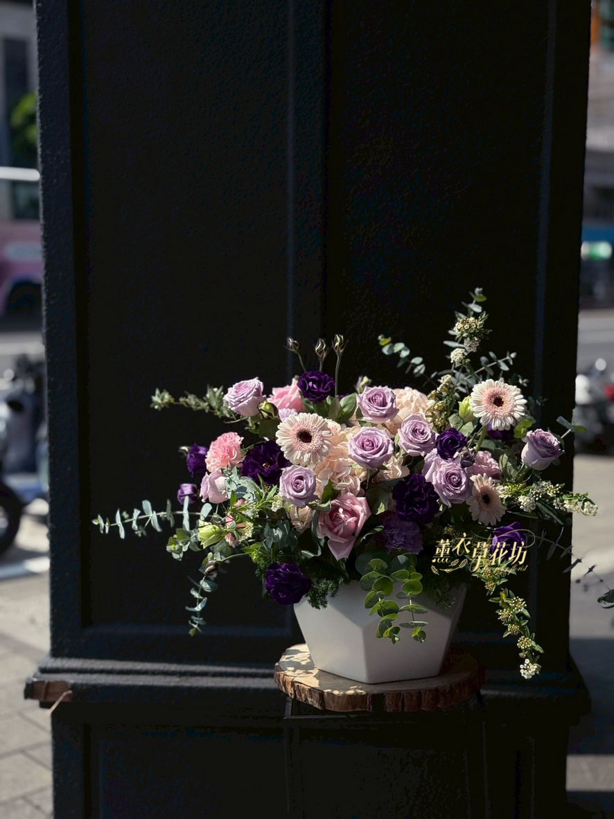 【品名】歐式盆花設計~典雅氣質~紫色系列(鮮花3-5天觀賞騏)