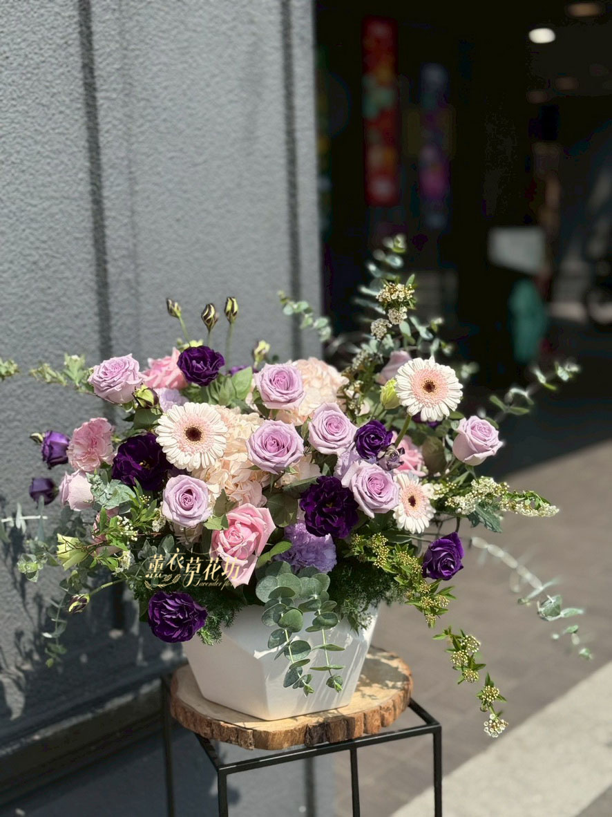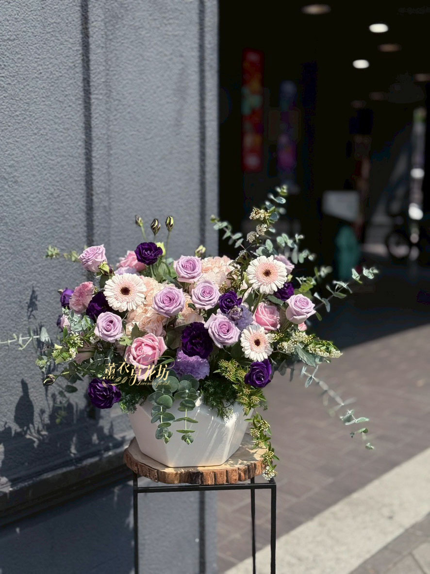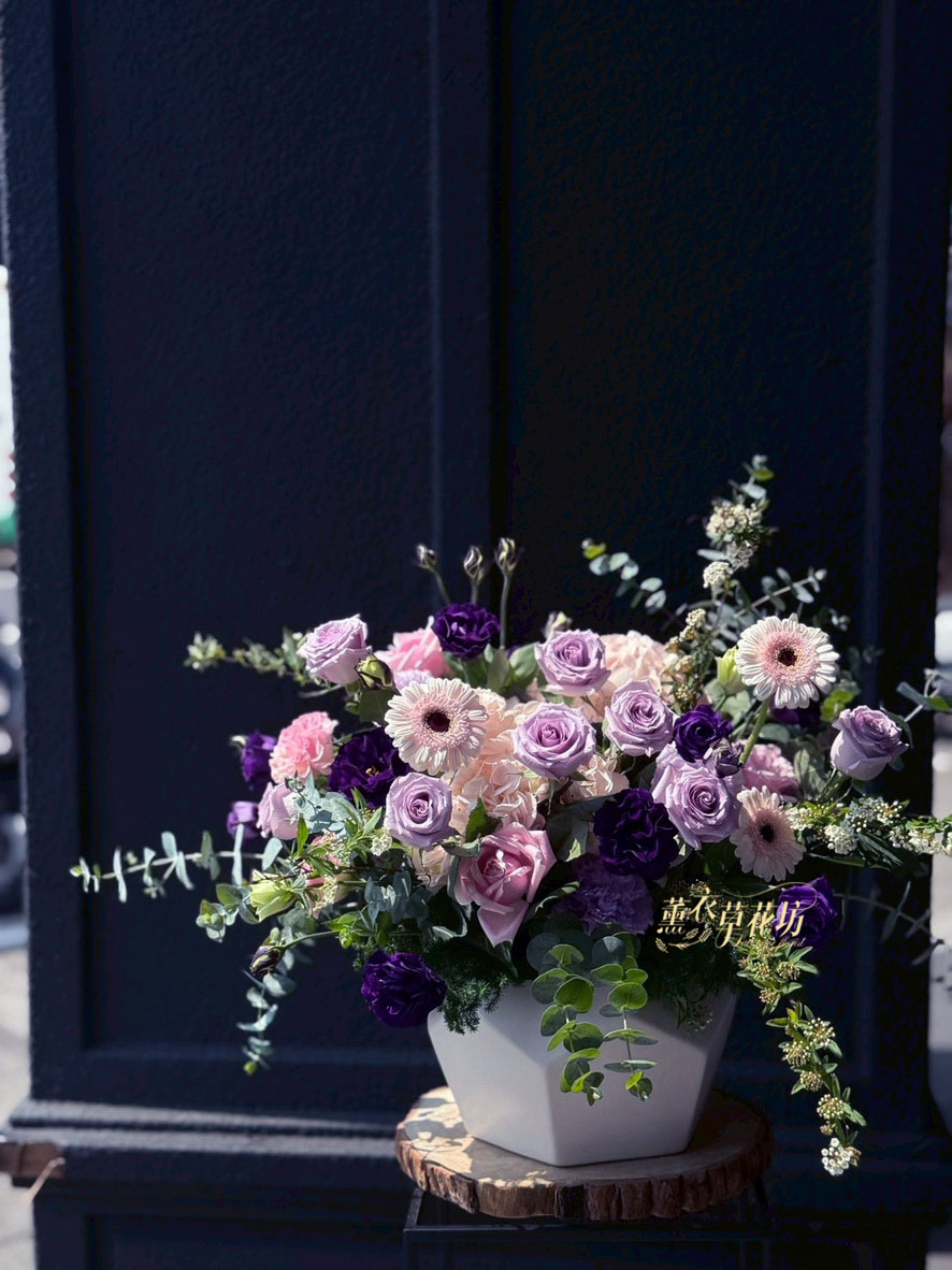 【品名】歐式盆花設計~典雅氣質~紫色系列(鮮花3-5天觀賞騏)