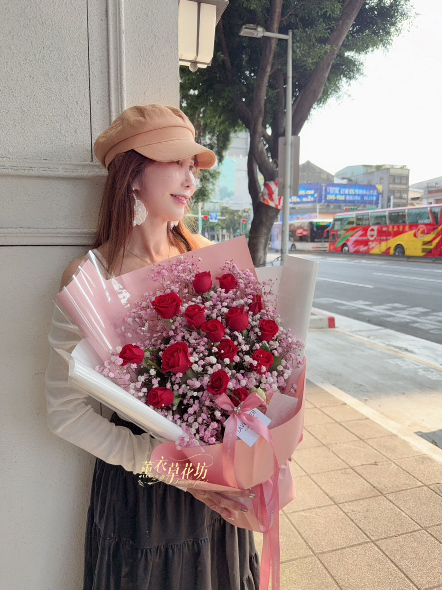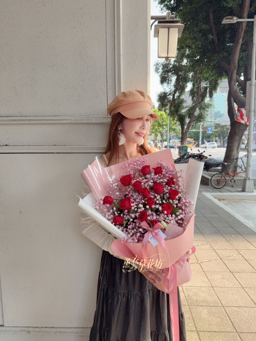 【品名】台灣~/玫瑰11朵 /滿天星/花束.設計師搭配類似唷.請預購喔
